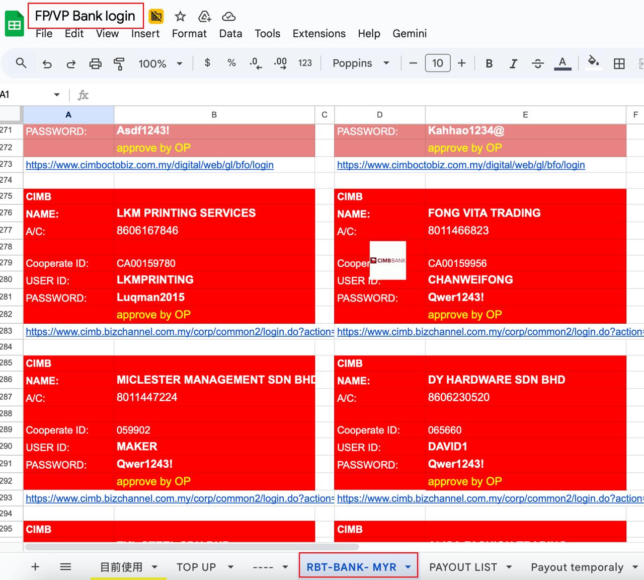 Note: Get the bank details at the google sheet named FP/VP Bank login > RBT Bank-MYR