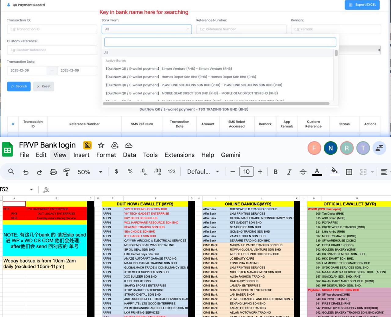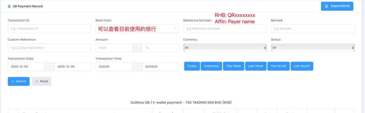 - Rapidpay → QR Payment Record → Bank From (check the bank under “Our”).