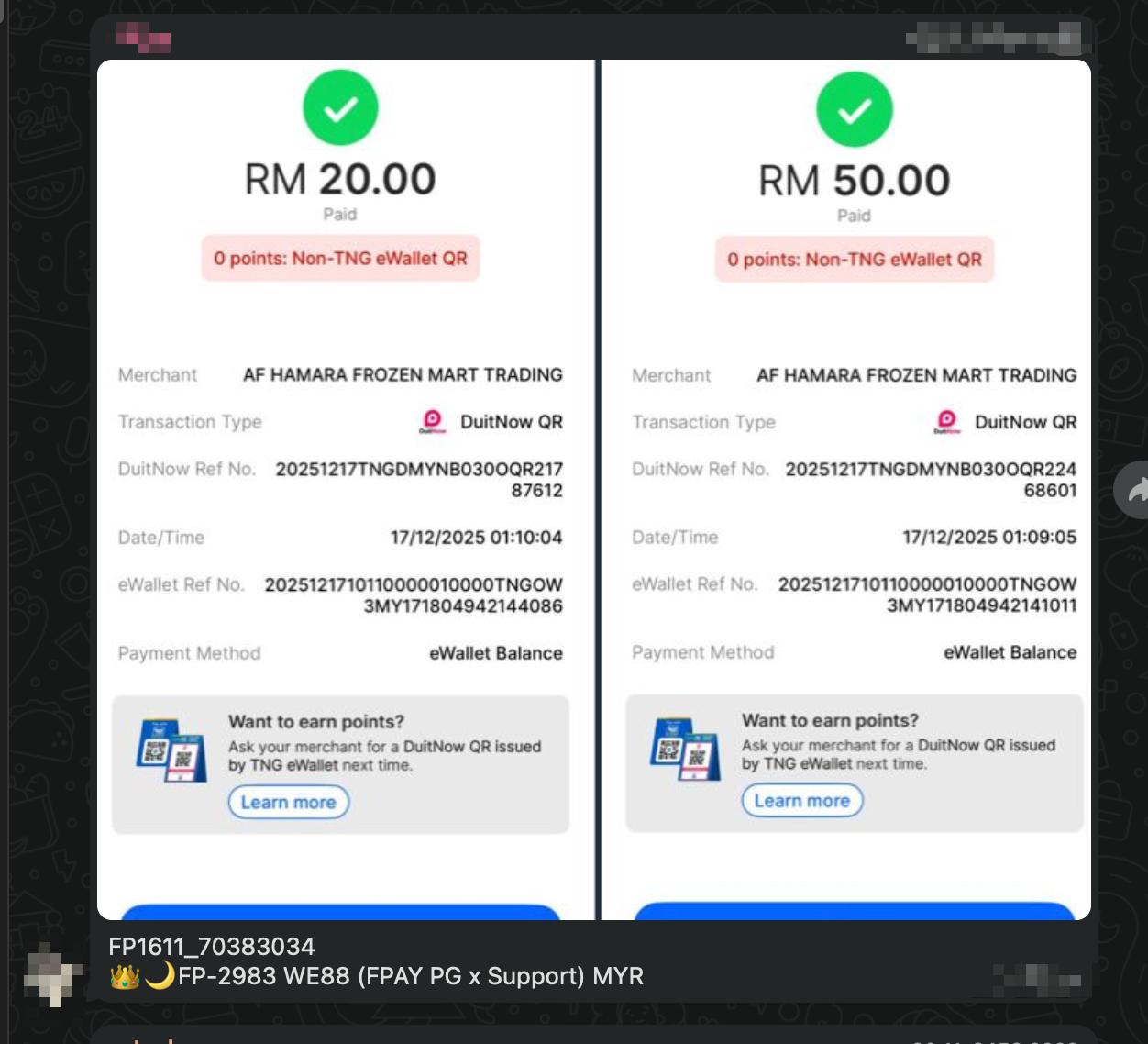 Before providing the merchant order ID to the merchant, please refer to the TELEGRAM merchant’s receipt to match the information, you can compare (status, amount, completion date, user name, merchant ID) via Fpay for checking