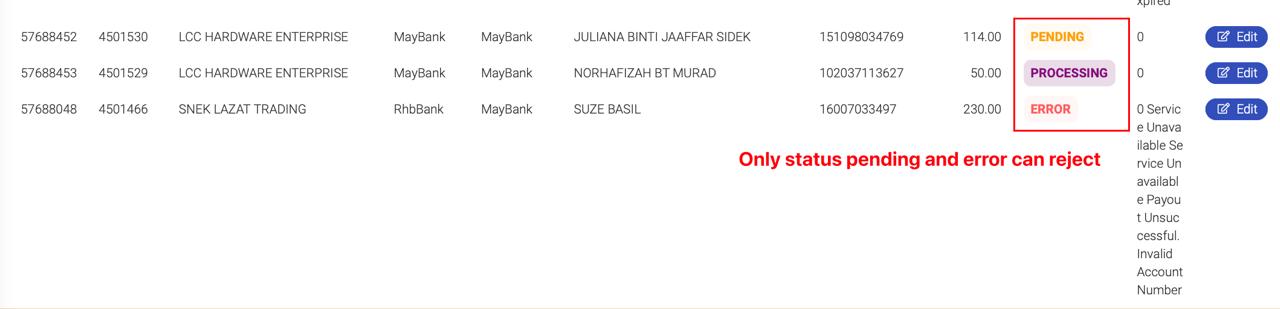 - Reject Process (FPAY Side)