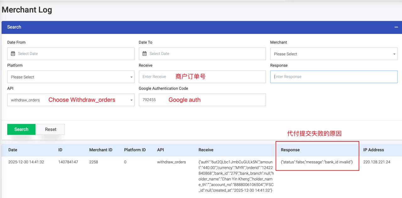 - False – Daily Limit Reach → Check Merchant List → Bank Details → Payout Limit + 40%.→ Ask the merchant to resubmit.