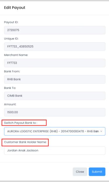- If need to change bank rerun, switch Payout Bank to other bank for processing