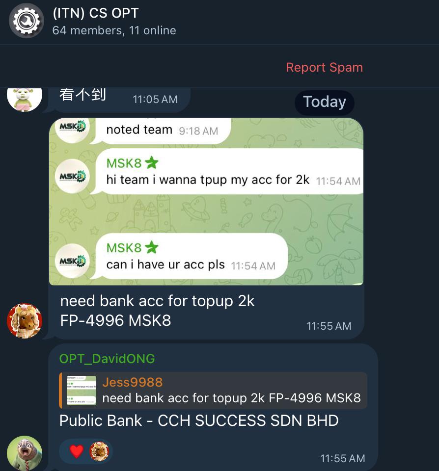 2. Check in Telegram – CS OPT , let OPT provide available account.