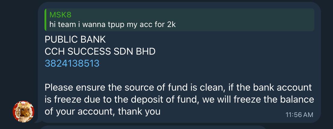 - Payouts exceeding MYR 10,000 will not be auto-matched by the bot.