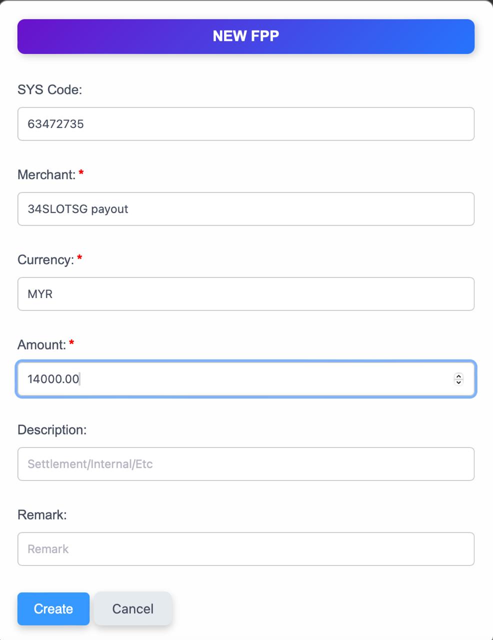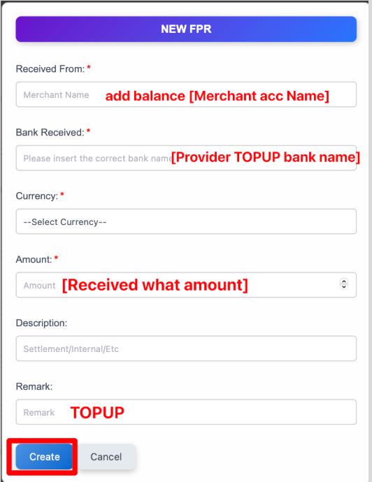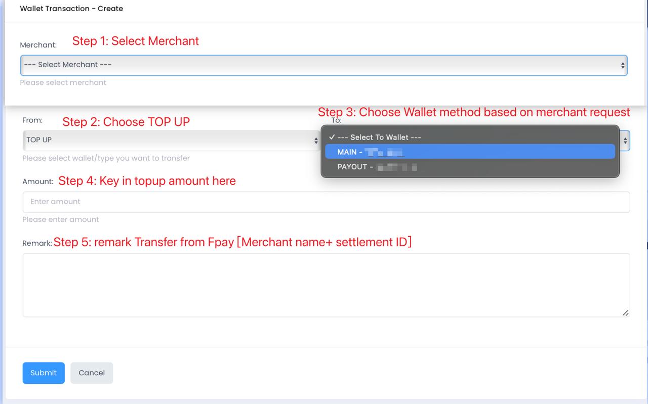 - FPAY → Wallet Log → Create Wallet Log → Update all the detail.