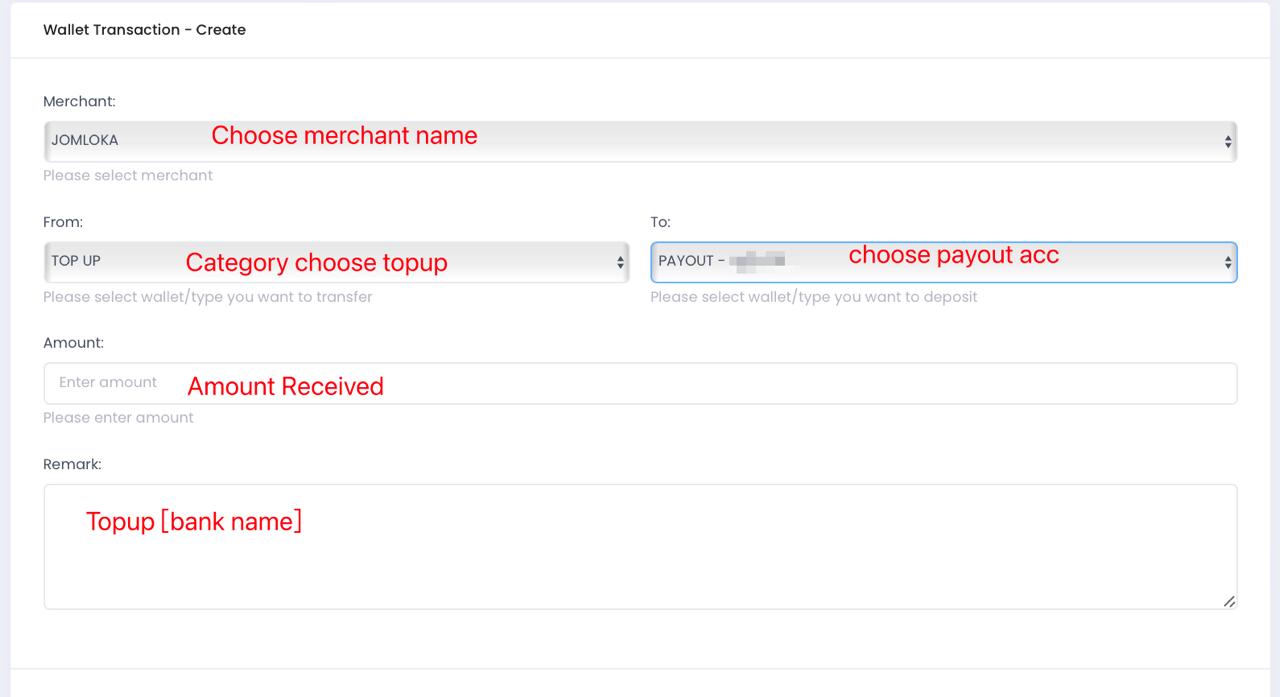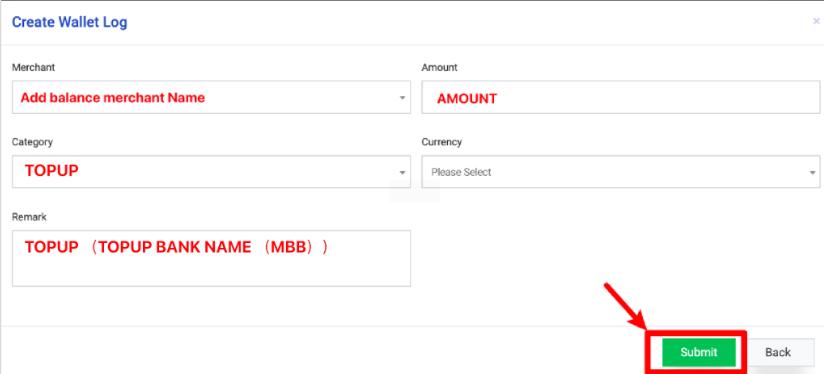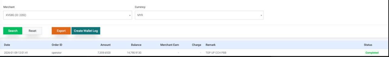 - After done add, back Wallet Log – search [To merchant name , currency]. Screenshot the result and notify the merchant with “DONE”