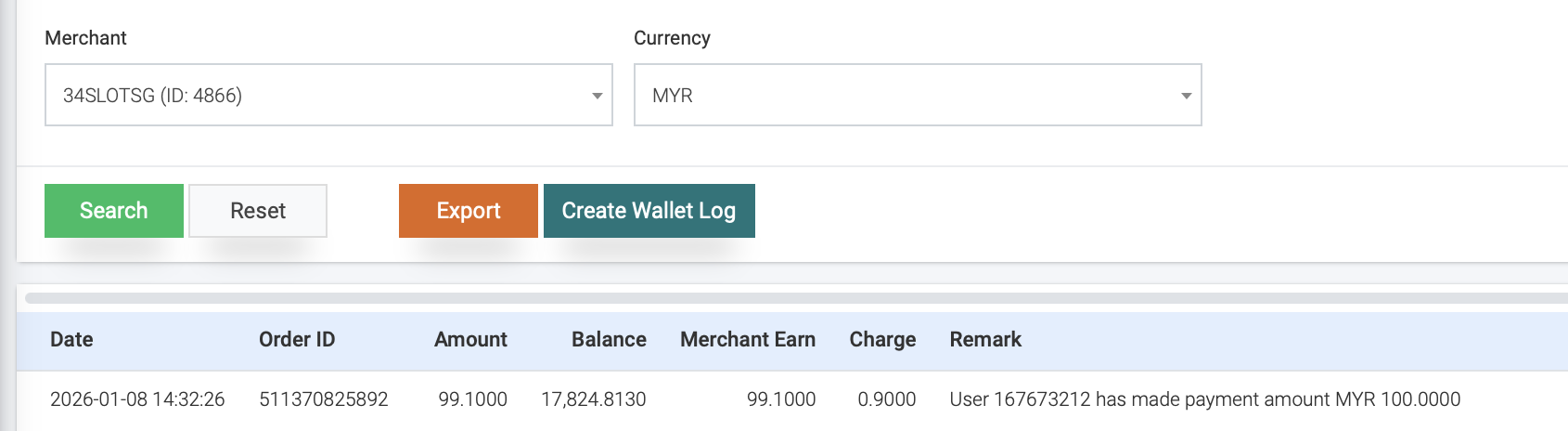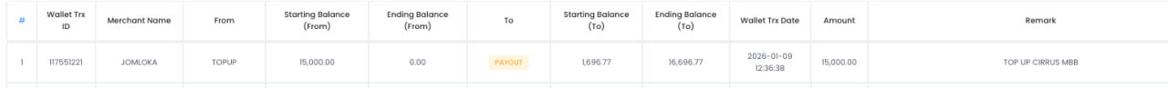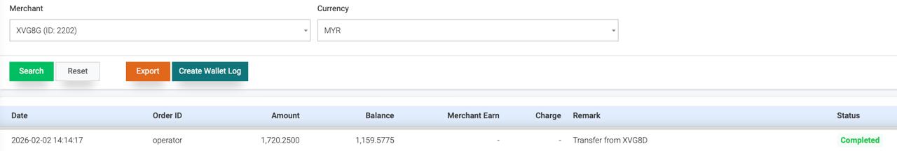 - After done add, back to Wallet Log – search [To merchant name , currency].