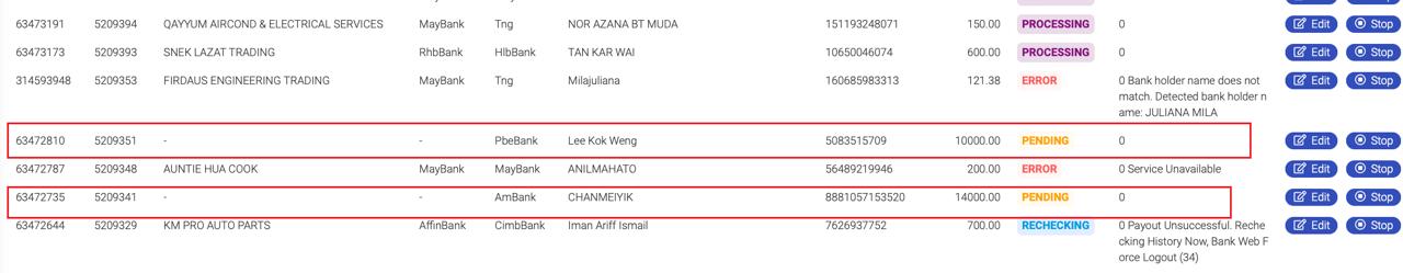 Purpose: Manually processing payouts above MYR 10,000 helps reduce the workload on the Bot Payout system.