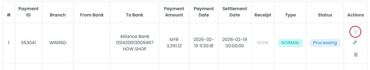 ◦ FPAY / Vpay: Verify in Withdrawal List G.