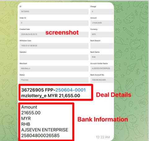 Copy deal details.+ Bank Details + Screenshot